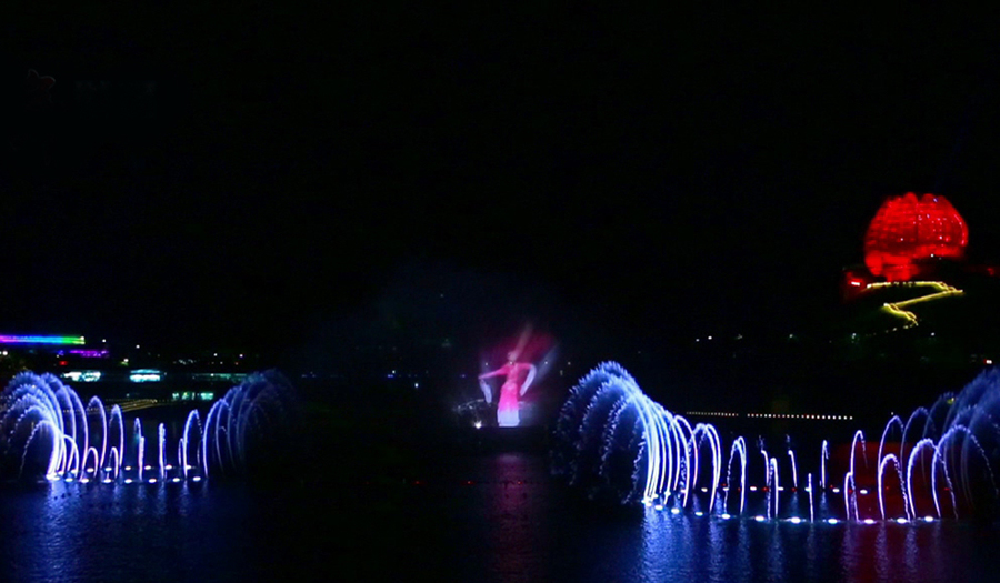 水幕通常高達(dá)20余米,寬30-60米,水幕電影播放時的畫面具有很強(qiáng)的立體感和空間感,人物似騰飛天空或自天而降,與自然夜空融為一體,產(chǎn)生一種虛無縹緲和夢幻的感覺,再配以激光圖案,場面更顯宏大,氣勢磅礴。水幕電影適用于重大節(jié)日集會、大型廣場、主題公園場所。